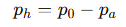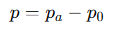 Коли абсолютний тиск нижчий за атмосферний, різниця називається вакуумним тиском ( pₕ ) і виражається як: